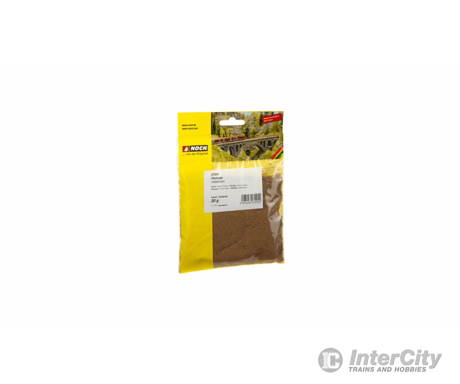 PROFI Flock is a special, finely-ground flocking material in various natural colours. The product is ideal for flocking natural trees as well as designing realistic ground covers and meadows. With the medium brown Flock you can create a detailed landscape and ensure a lifelike appearance of your model railway layout at the same time.