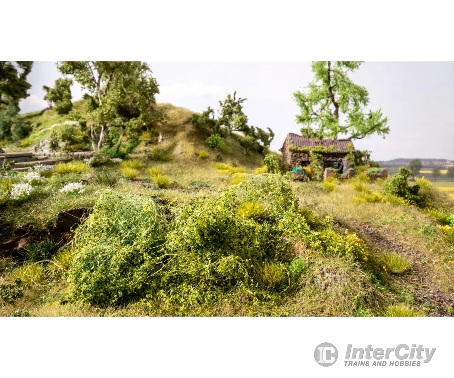 In contrast to neatly mown lawns and meticulously cut bushes and hedges, free-growing nature flourishes in the light and is barely confined in its thirst for growth. For railway modellers, depicting free-growing nature in a model is a huge challenge. This can be realised perfectly with PROFI Bushes. PROFI Bushes are suitable for reproducing both flat, intensive undergrowth such as brambles, or even higher, dense bushes in a model. The super realistic Bushes’ backing material is a natural fibre that is stable and malleable. It was flocked with a special mixture of NOCH Leaves and NOCH Structured Flock for a natural optical effect. This gives us a unique product that is ideal for depicting dense model vegetation.