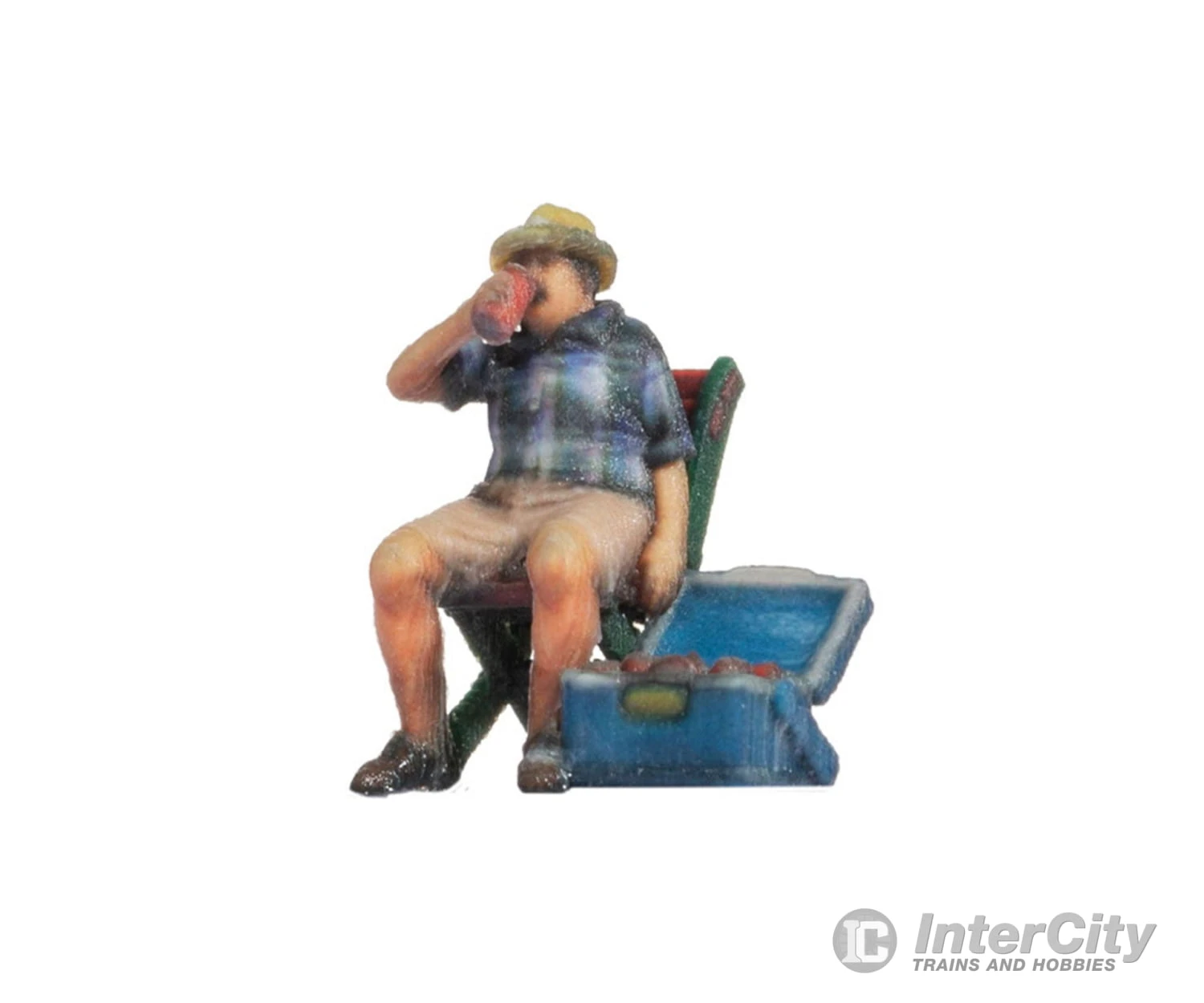 This detailed model construction figure ‘Man on folding chair’ shows a relaxed moment: The man is sitting comfortably on a folding chair, enjoying a drink and has his cool box within reach. Perfect for scenes by the lake, in the park or at the campsite, this figure brings authentic life to your model landscape. The high-quality workmanship and realistic colors make it a real eye-catcher. Ideal for H0 model railway landscapes or dioramas.