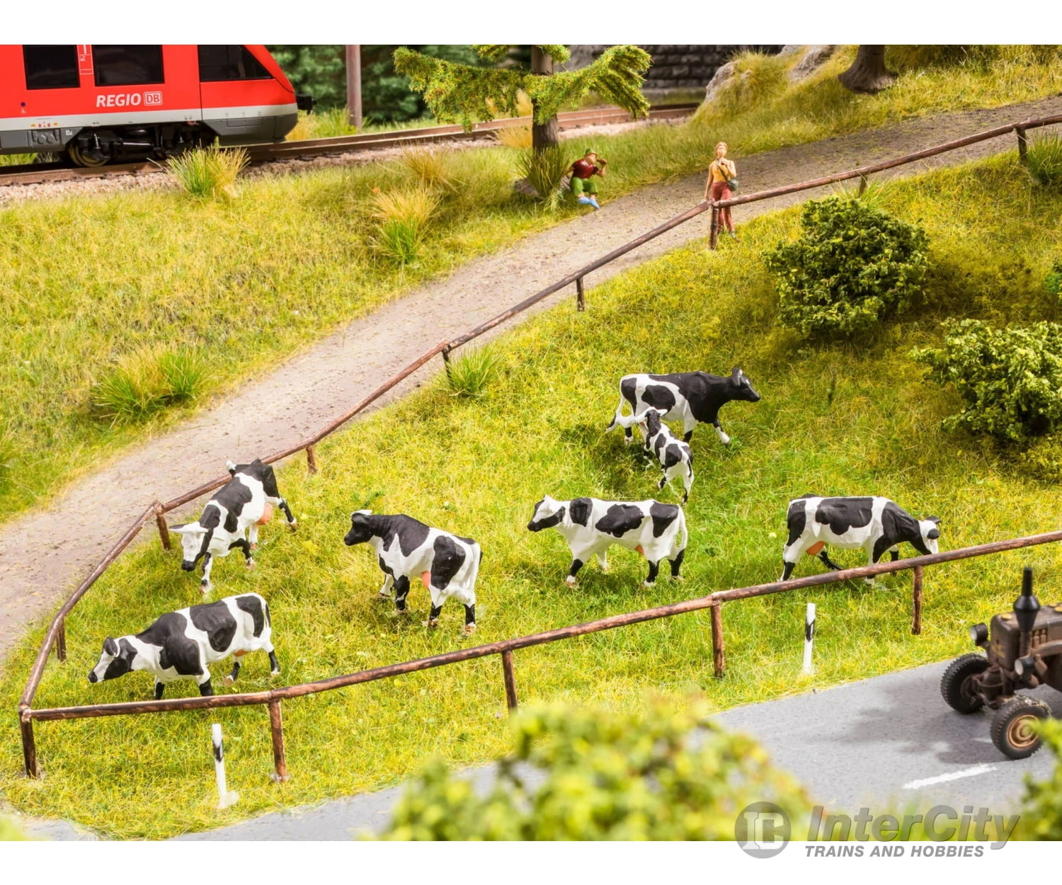 With the Sound Scenes, you can turn your model railway into something very special. Thanks to the compact design of the electronics and loudspeakers, sound emerges where it comes from in the original. The ready-to-connect electronics can be installed, for instance, in churches or placed directly in a building next to the street musicians. You will be surprised how much more realistic a sound sounds when it occurs in the middle of the action. The “Cow Pasture” scene ensures even more reality on your model landscape. The black and white spotted cows should not be missing from any rural scene. In addition, the mooing of the “happy cows” can be heard in a pasture. The connection is made via a standard 16 V model railway transformer. The sound has a duration of approx. 20 seconds. The item is also suitable for AC and DC. To connect the sound module to a power source, connect the black cable directly to one of the two light outputs on the transformer. The red cable is connected to the other light output. The sound is now continuous. If desired, however, you can make the sound switchable. A switch or control panel (not included) can be used for this purpose. Interrupt the electric circuit with this on and off switch on the red cable. Note: the volume is not adjustable. If you find the sound too loud, you can order a resistor for retrofitting.