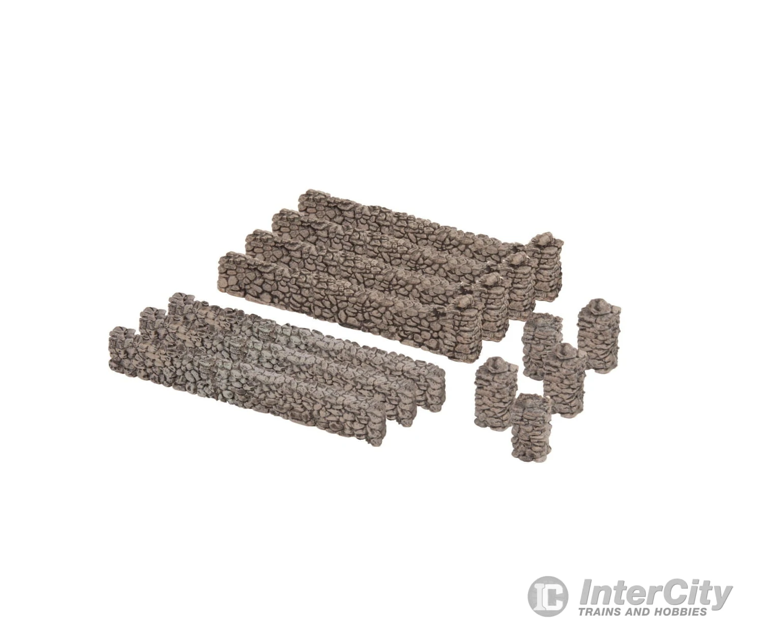 The plastic Walls are perfectly suited to enclosing buildings, fields, properties, gardens and much more. The Walls are formed using a plastic injection moulding process and are thus stable and durable. They look very natural because they are elaborately handcoloured in multiple colours. A fieldstone wall consists of hand-collected and sorted fieldstones that are joined together with mortar. This process is very laborious and lengthy, but worthwhile for enthusiasts to create an individual wall for the garden.