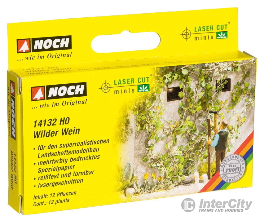 NOCH Laser-Cut minis are a series with small and realistic laser-cut kits and laser-cut plants. The extremely filigree miniature plants are laser-cut from sturdy, multicoloured, printed special paper. Readers of Eisenbahn Magazin (a German model railway magazine) named this innovation Model of the Year in 2009. Since then, we have developed the Laser-Cut minis further and made them even more delicate, so the finest details and structures are visible. Due to the special paper’s complex formula, they are extremely stable and malleable at the same time. In addition, they do without the artificial shine of plastic products. It doesn’t get more natural than this! The Laser-Cut minis kits are highly detailed models at a low price. These pretty little motifs liven up any scenery and certainly have a place on every layout. You can create a special highlight on your model landscape with the Virginia Creeper. Whether it’s on residential buildings, restaurants or sheds, the plant will attract everyone’s attention.