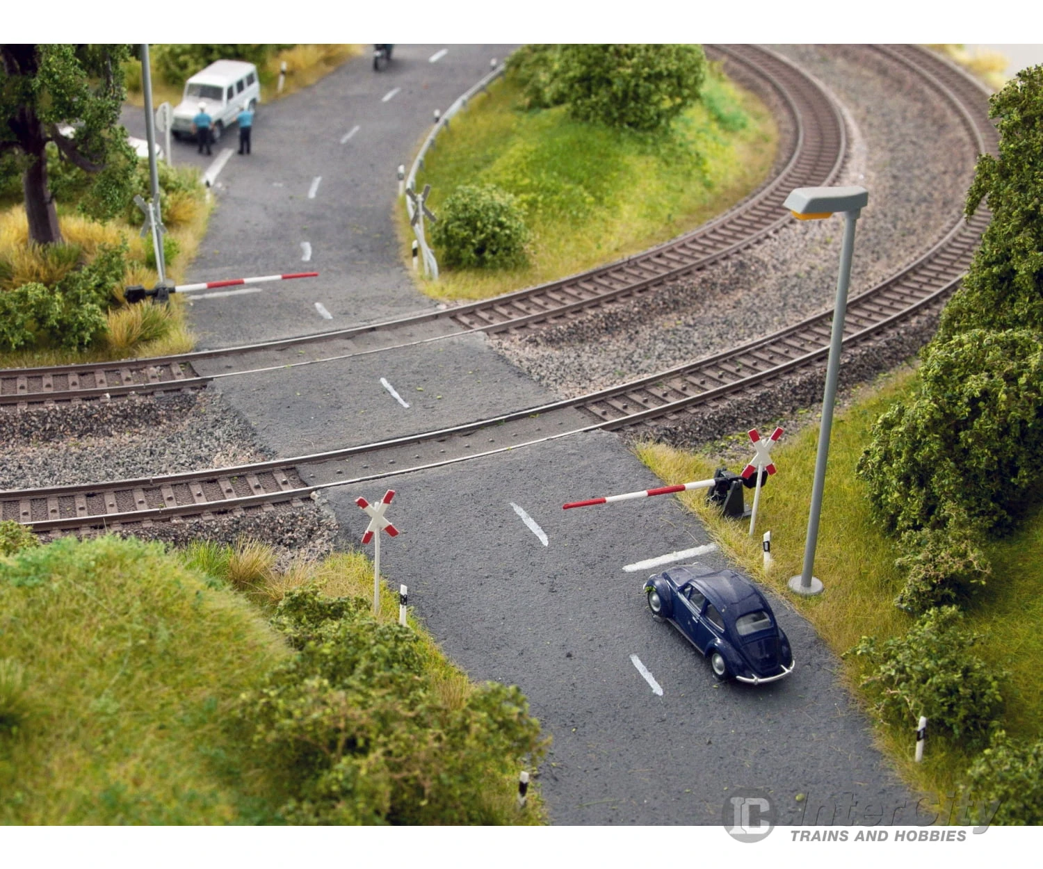 Die “Bahnschranken mit Andreaskreuzen” sind fur alle Freunde der Spurweite H0 (Masstab 1:87) geeignet und finden auf jeder Modellbahnanlage eine Verwendung.