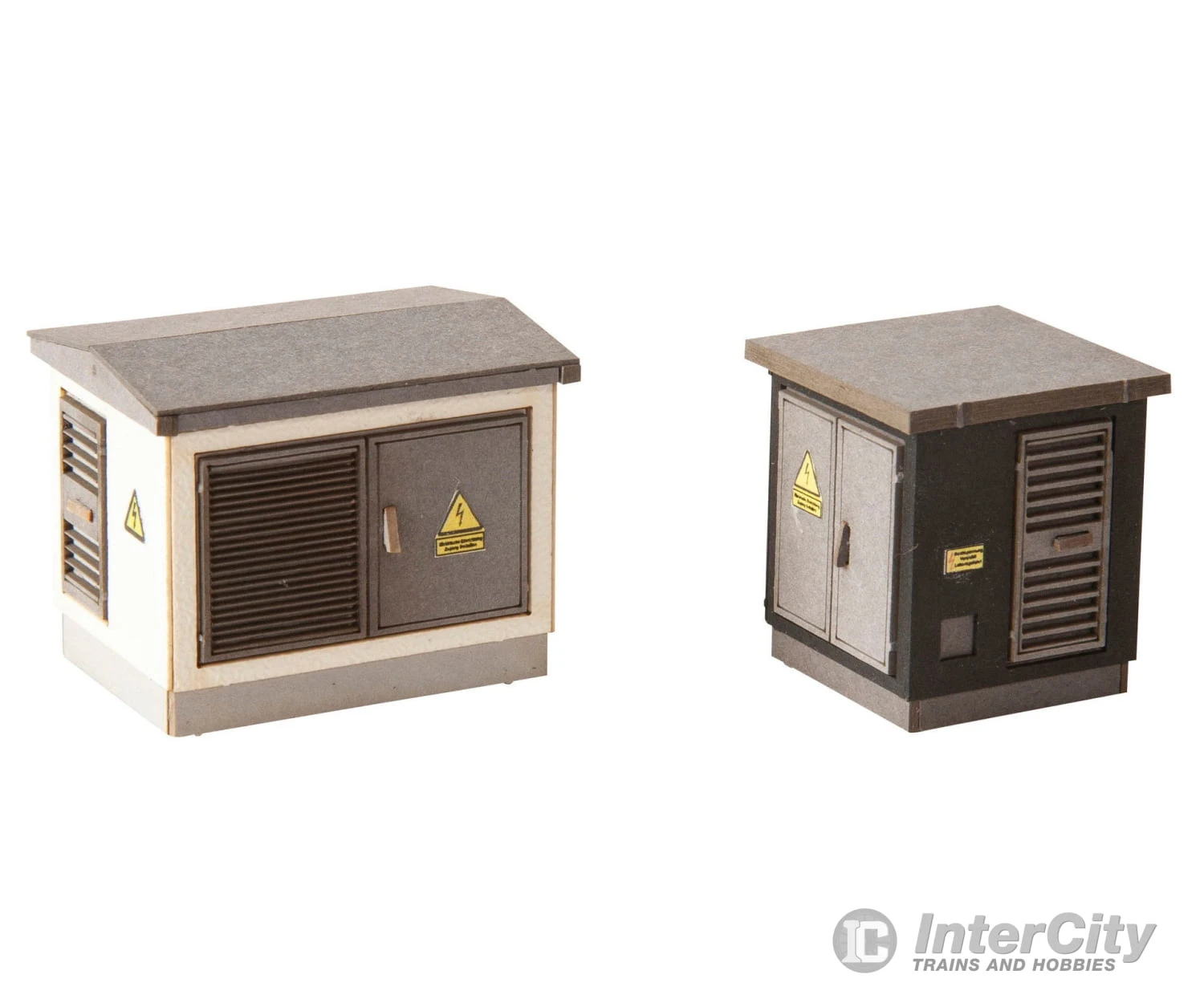 Die Laser-Cut minis “Transformator-Stationen” in der Spurweite H0 eignen sich ideal, um Landschaften noch individueller nachzugestalten. Die Bauarbeiter sorgen fur eine ausreichende Stromversorgung. Hier ist viel zu tun, damit auch wirklich alle Haushalte genug Strom haben.