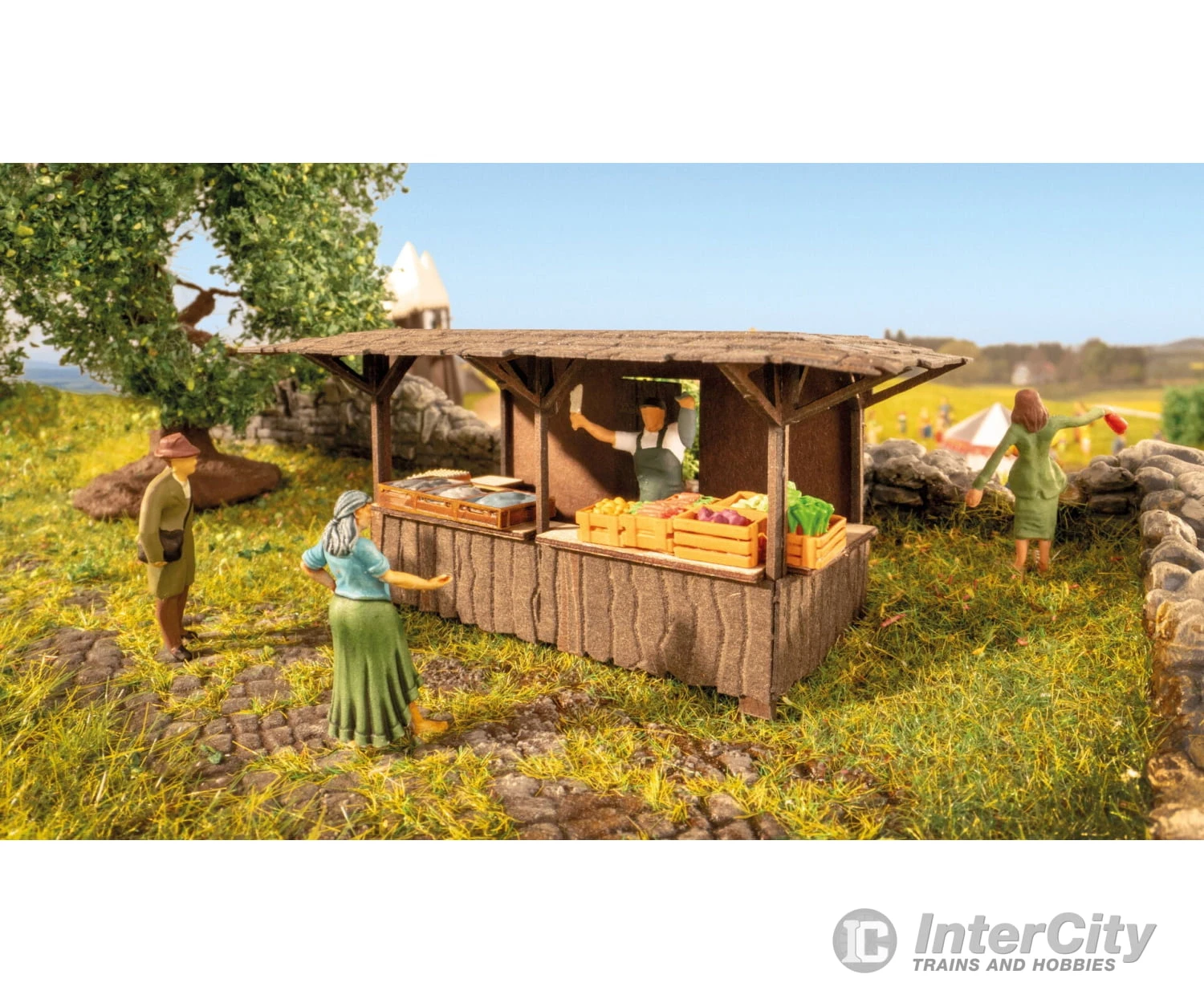 The Laser-Cut minis medieval stall also makes their modelled landscape look even more realistic.