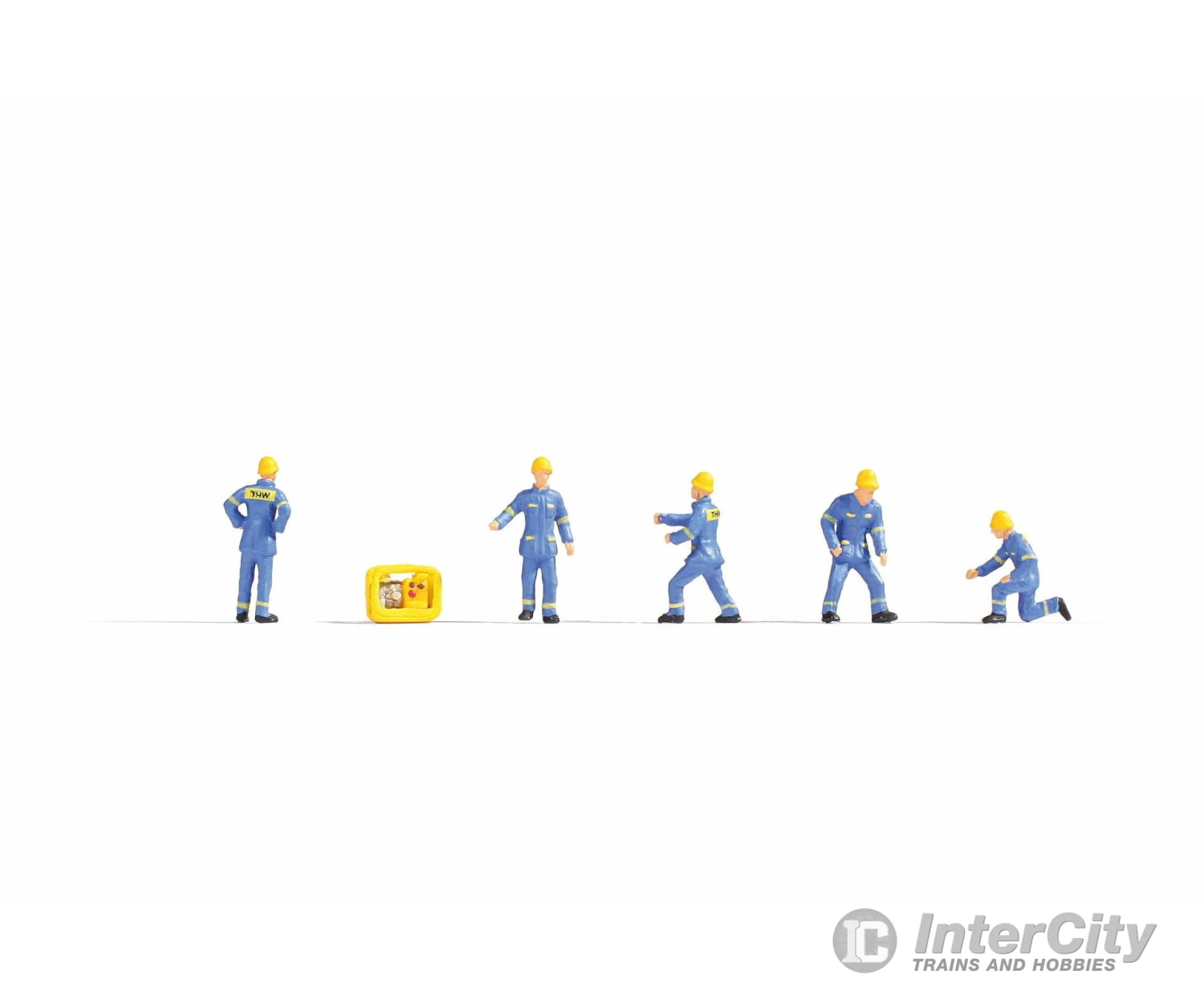 Das Set enthalt funf Mitarbeiter des technischen Hilfswerks im Einsatz und einen gelben Generator. Die Modellfiguren sind im Masstab H0 (1:87, ca. 2 cm hoch) ausgefuhrt und tragen die typisch blauen Uniformen des THW. Die Kunststoff-Figuren sind liebevoll handbemalt und ideal fur den Einsatz auf der Modelleisenbahn oder auf Dioramen geeignet.