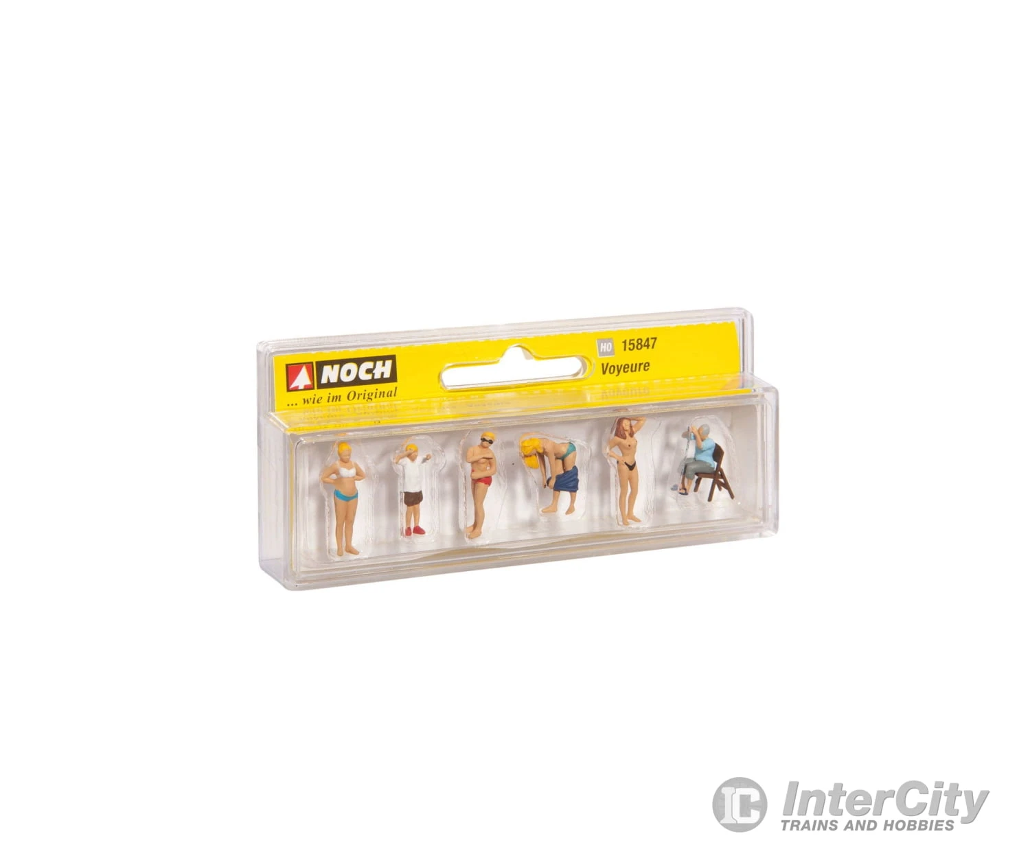 The ‘Voyeurs’ set in H0 gauge contains four scantily clad women, as well as a man and a child. The miniature figure set is ideal for depicting humorous or unusual scenes on your model railway layout or diorama. A man hiding behind his camera secretly takes pictures of an event that he enjoys watching. The figure set also includes women who are very lightly dressed and a child who covers his eyes to avoid having to watch certain events.
