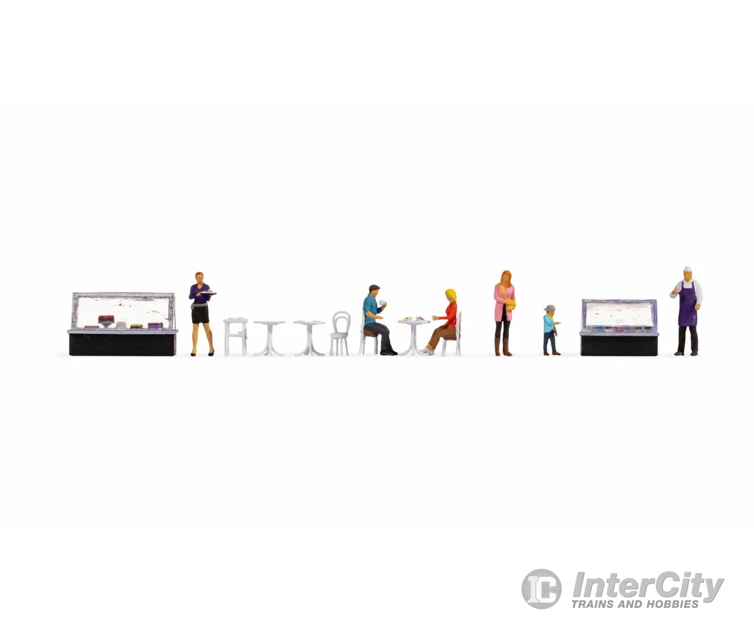 With the Themed Figures Set “Cafe”, you can bring the relaxed flair of a lively street cafe directly to your model railway layout.Guests chat over a fragrant coffee, an ice cream vendor hands out colorful scoops over the counter, and a friendly service employee looks after the well-being of visitors – a scene full of life and enjoyment.
