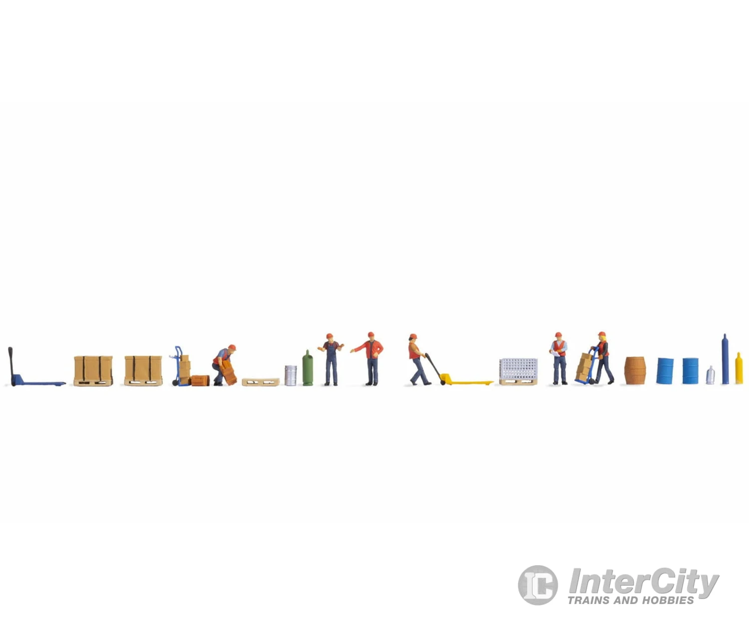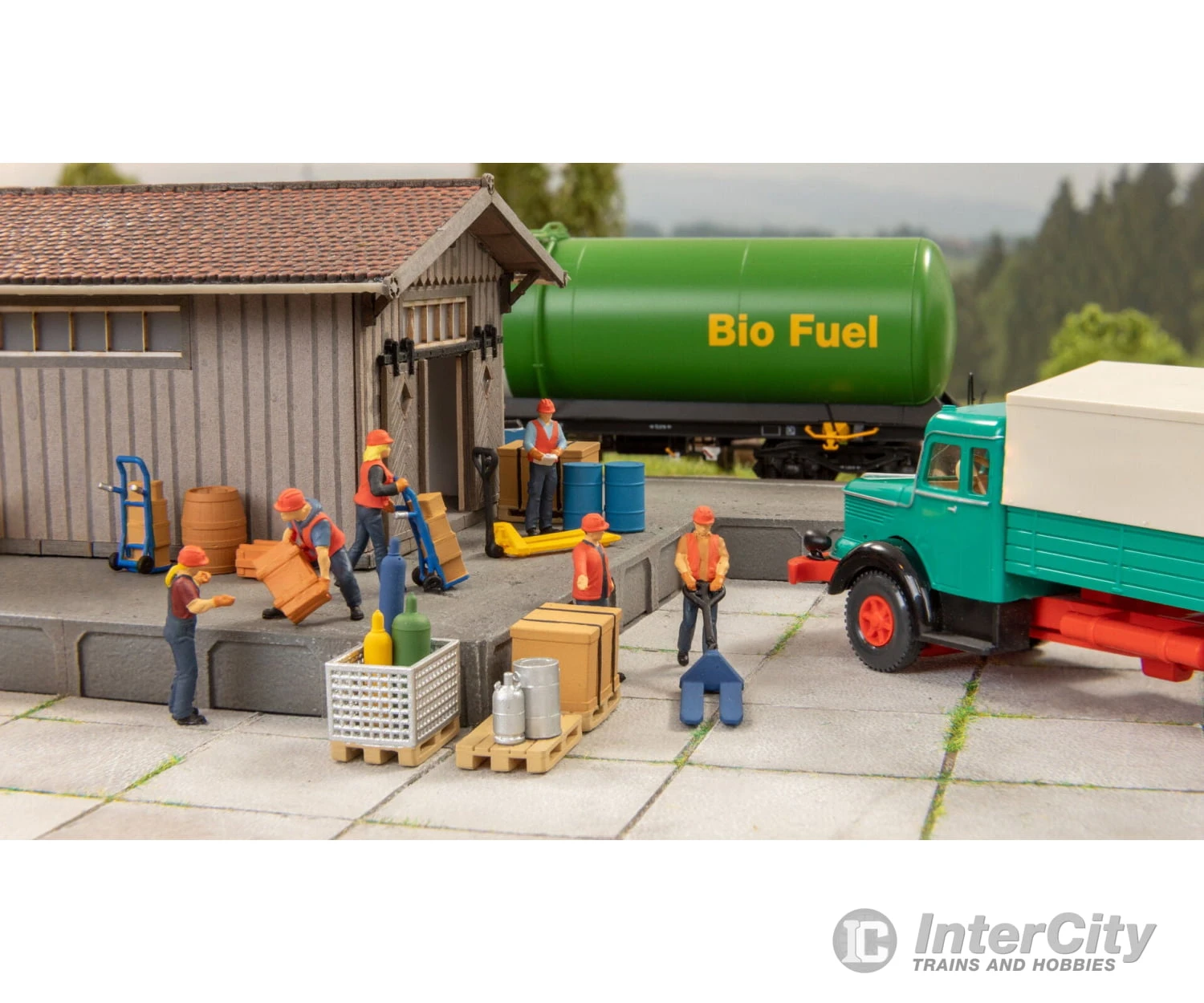 Warehousemen and hauliers have their hands full. Crates have to be moved, barrels stored, and many other goods transported. It’s good to have a colleague or two from logistics to keep track of things and know what has to go where. With the goods and matching figures, you can decorate beautiful and vibrant scenes at goods yards, logistics centres, loading bays and factory courtyards in your model landscape.