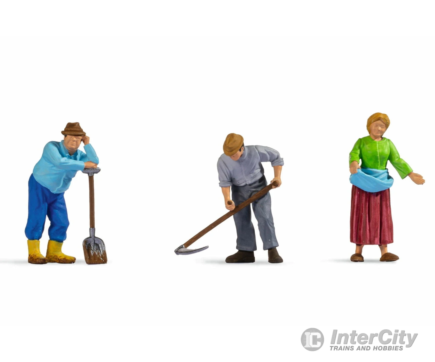 The »Farmers « figures in 0 gauge are perfect for inclusion on every designed model farm. The farmer, who is taking care of his cows in the cow pasture, the sheep in the green meadow and the chickens in the henhouse, has his hands full. He drives his tractor around his meadows and harvests the lush green grass. Even miniature animals on every model landscape need responsible »Farmers « who care about their wellbeing.