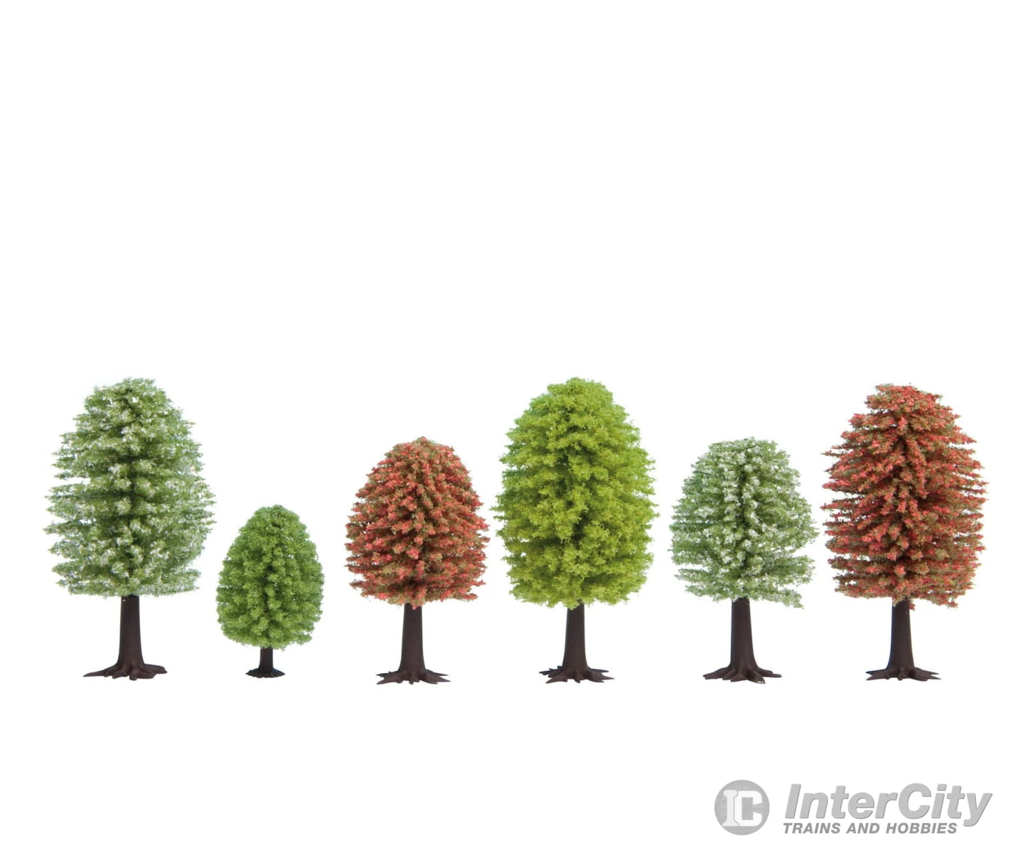 Die Kunststoff-Spritzlinge der Laubbaume sind handkoloriert und mit einem eigens dafur entwickelten, realistischen Flock belaubt. Die Tannen sind mit einem speziellen, naturgetreu wirkenden Nadelflock versehen.