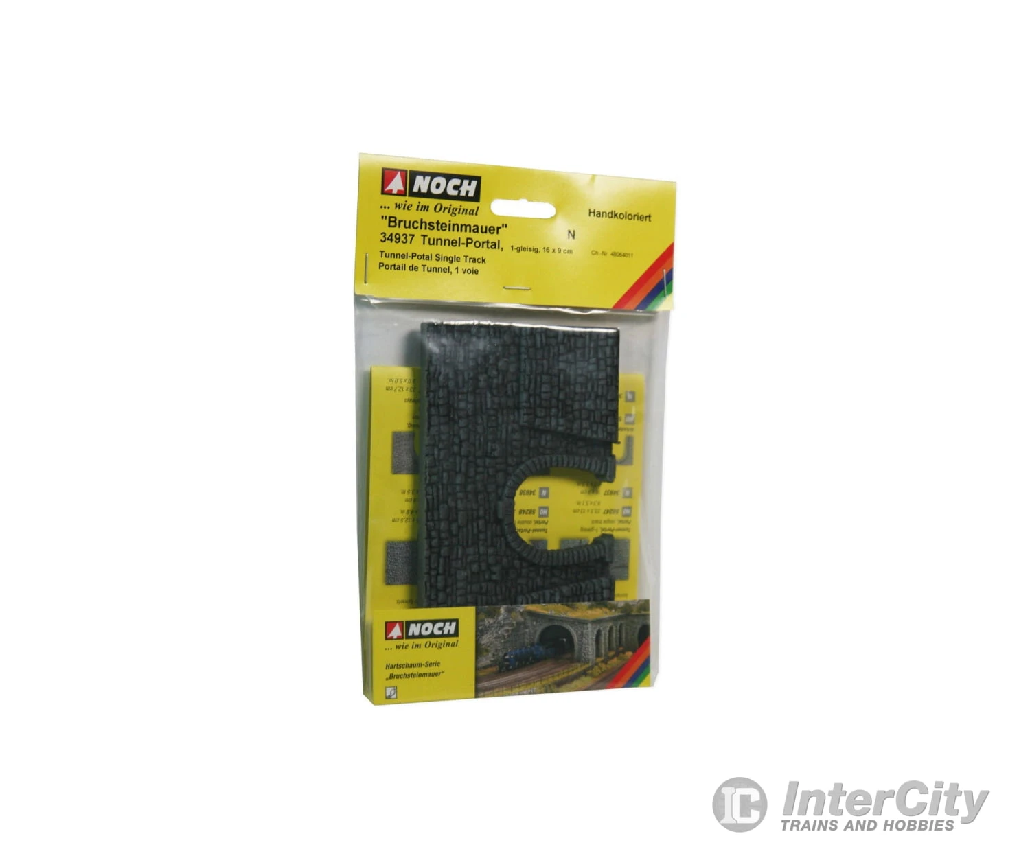 Das 1-gleisige “Tunnel-Portal” aus der Hartschaum-Serie “Bruchsteinmauer” eignet sich ideal, um 1-gleisige Tunnel- und Bergeinfahrten realistisch zu gestalten. Das Portal in der Spurweite N pragt nicht nur das Gesicht einer Bahnlandschaft – in natura ebenso wie im Modell auf Ihrer Anlage.