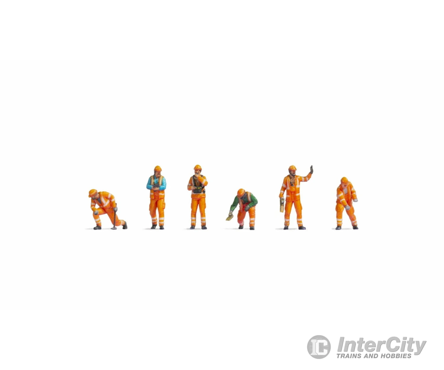 Shunters are also known as shunting staff. They couple or uncouple vehicles, secure parked vehicles with wheel chocks and operate points. They hold back uncoupled railway wagons with brake shoes and observe the route. The Model Figures are wearing the typical orange safety clothing and orange hard hats. All the figures are assuming typical working poses. The set is perfect for realistically decorating railway stations and depots on model railway layouts.