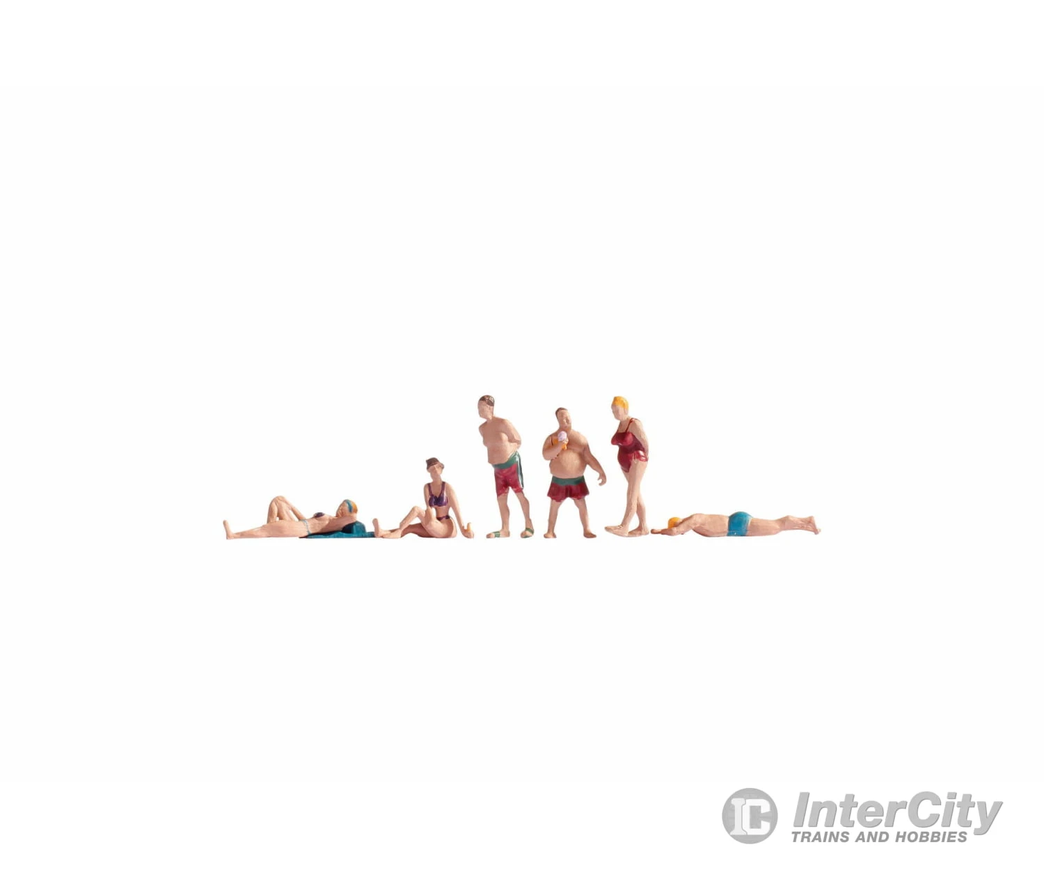 The set for the TT gauge (scale 1:120, approx. 1.5 cm high) includes three women and three men bathing.