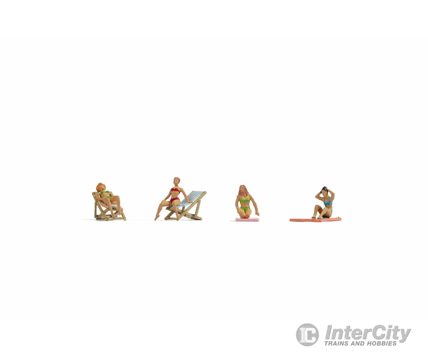 The set for the TT gauge (scale 1:120, approx. 1.5 cm high) contains four women who have made themselves comfortable on two deck chairs and two towels.
