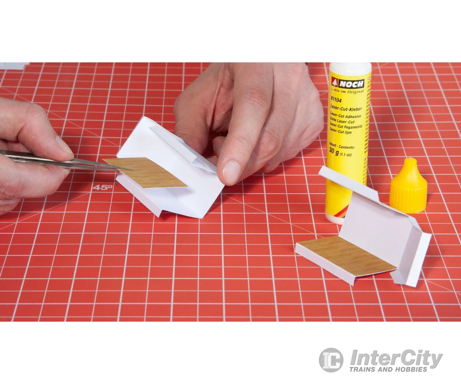 The NOCH micro-rooms system is based on cardboard light rooms of different sizes that can be decorated with the enclosed decorative sheets. Provided with a floor, wallpaper, etc., they are ideal to be decorated with NOCH furniture and figures. The LEDs are affixed at the top of the light room. Assisted by the enclosed diffuser film, light from the LED is realistically distributed throughout the room. If you want, hang up a pair of curtains and you’ll have another highlight in your model world! Design lovely details with NOCH products, from everyday scenes at the kitchen table to a passionate night of lovemaking in the bedroom! Thanks to the technology built into the mini circuit board, you can connect it directly without additional series resistors. Guaranteed to be free of flickering! The LED circuit boards measure 0.7 cm x 1.8 cm and are thus suitable for home lighting systems and light boxes by other manufacturers such as Viessmann ®