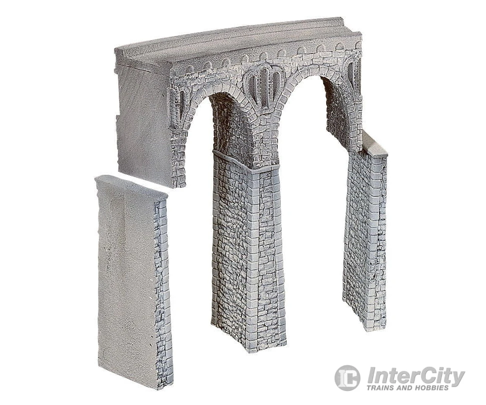 Combine the “Quarrystone Viaducts” in your model landscape with Walls or Tunnels in the NOCH Quarrystone Wall Hard Foam Series. The stones in the Wall Sheets and Tunnel Portals are an ideal match for the texture of the Quarrystone Viaducts.