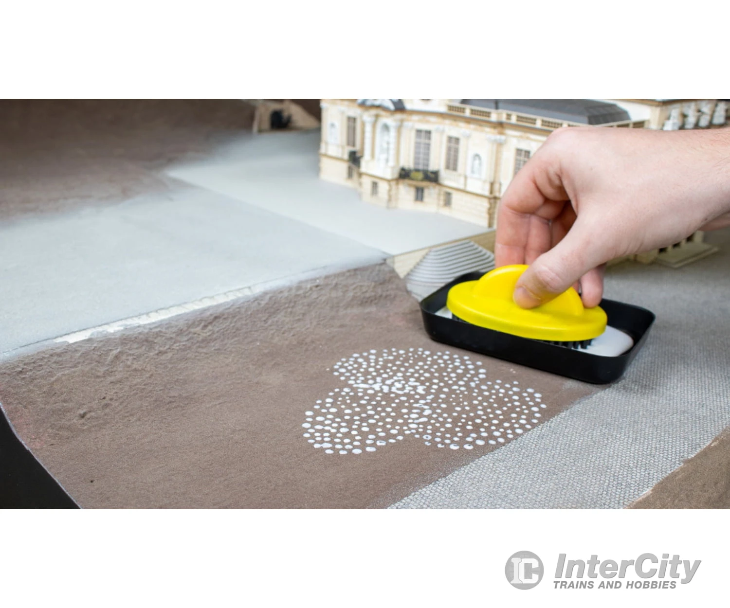 The set contains two stamp sizes: a large one for wide meadows and a small one for precise work, e.g. on railroad embankments. The enclosed adhesive tray makes application easier. After use, simply clean the stamps with water.