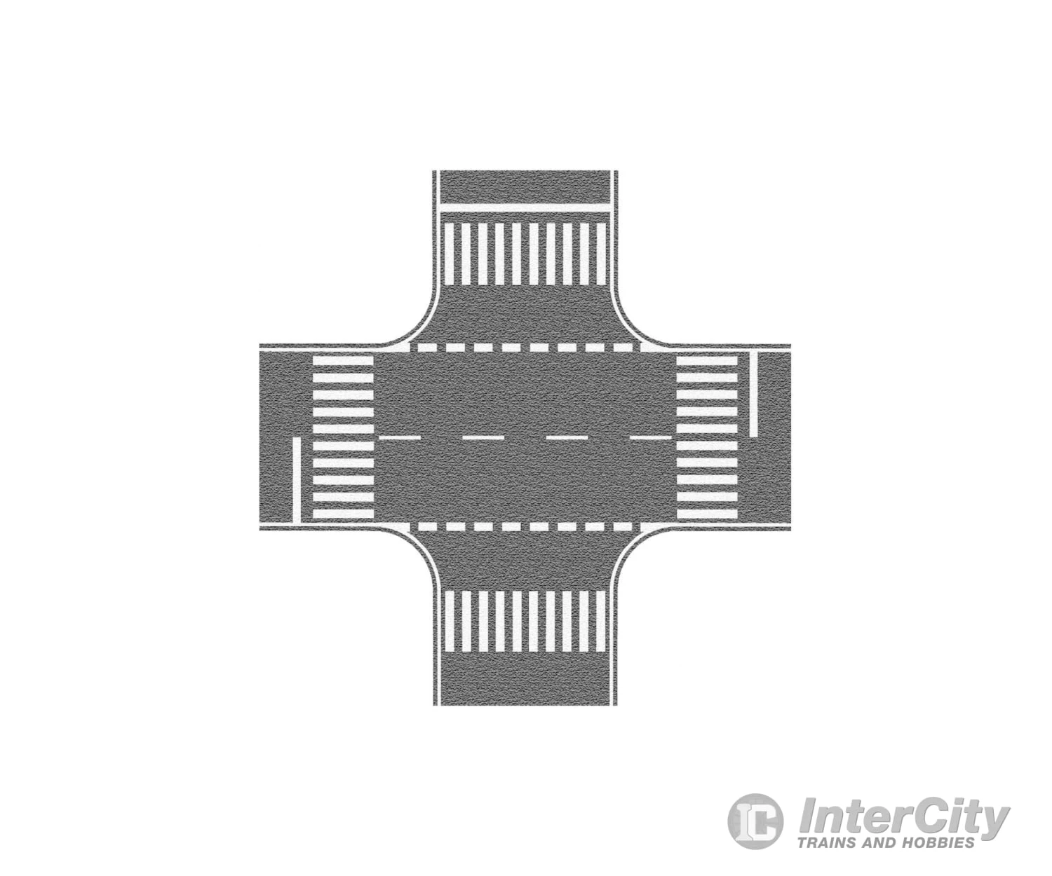 The H0 Crossroads’ lane connections are 8 cm wide and can therefore be positioned exactly on the Road Tape “H0 Main Road”. Since the Crossroads is supplied in two parts, the lane connection can easily be reduced by cutting it to the width of the H0 Country Road of 6.6 cm.