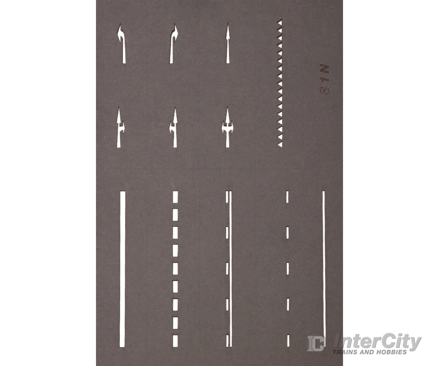 The “Starter Set Street Markings” offers the complete solution when designing street markings. With the flexible curved ruler, which is a part of the set, centrelines and street markings can be designed without any problem at all curves.The special street marking pen is ideal for adding street markings, either with the template or the curved ruler.The start set also contains one template for each scale H0, TT and N as sample. A more extensive variety of templates with different street markings, such as directional arrows, cross walks, parking space markings and a lot more symbols for all scales, are available individually. The special Street Marking Pens are available as a set of three as an accessory.