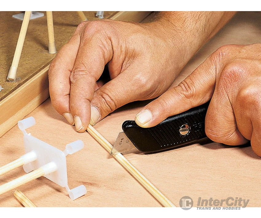 You don’t need any manual experience for this, and only a few tools: a pair of scissors, a craft knife, a backsaw, a hammer and a hot glue gun. In contrast to the conventional approach, you start by laying out the tracks.