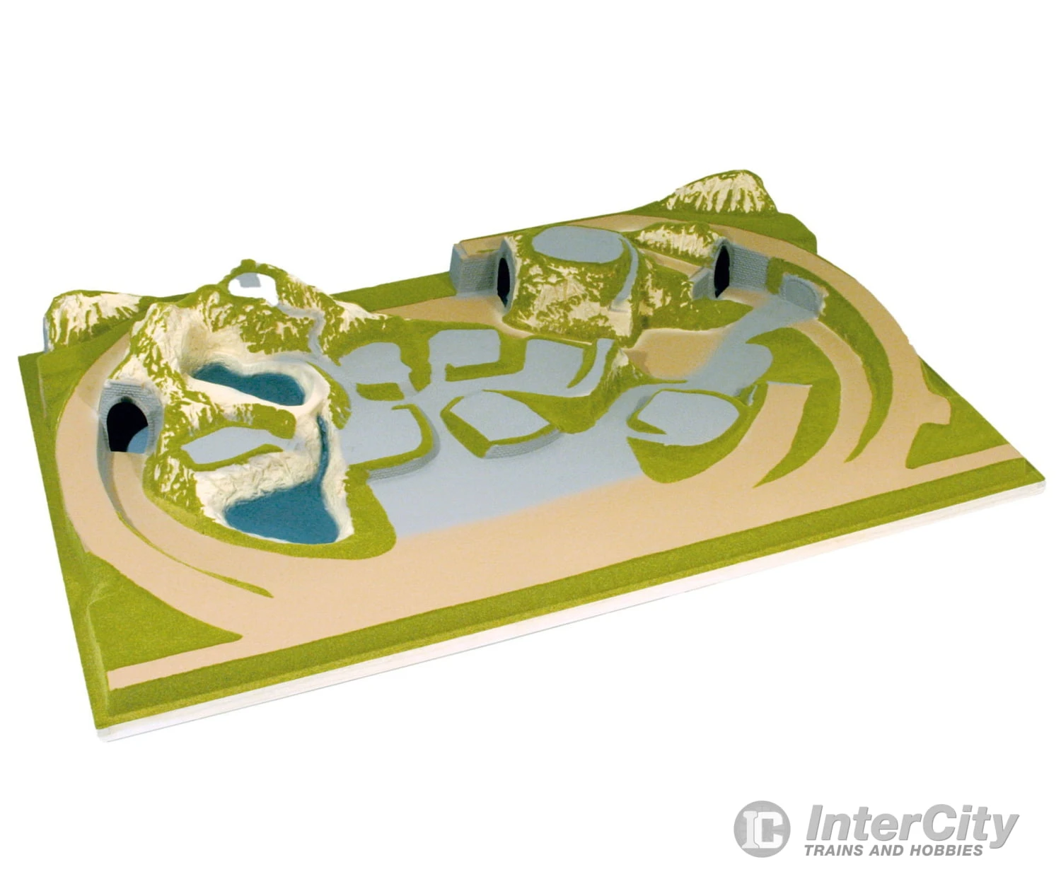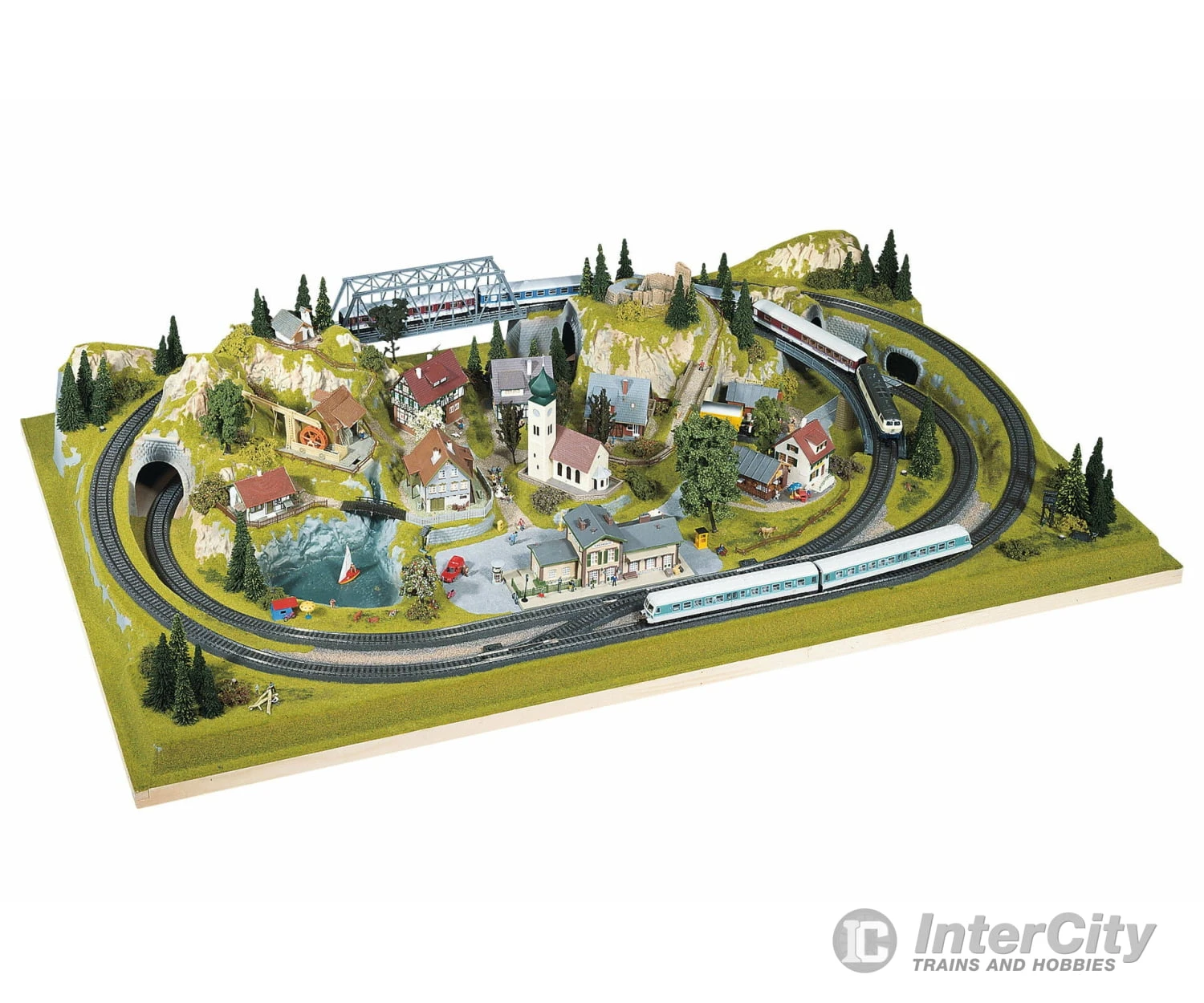 Scope of Delivery:• Base layout, hand-painted and with greening (with the Scatter Grass ‘Summer Meadow’, 2.5 mm), mounted on stable Wood Frame• Pre-cut underlay for the tunnels• Bridge construction kit for the H0 scale• Track plans for all applicable systems