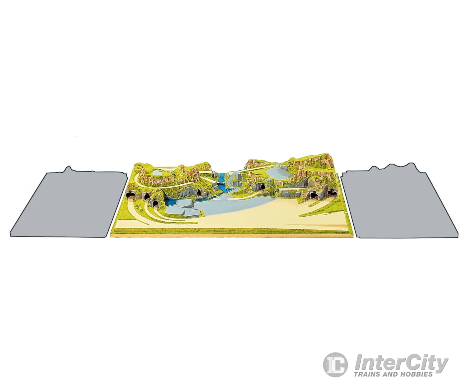 What is supplied: Base layout that has been handpainted and covered with grass (with the Scatter Grass ‘Summer Meadow’, 2.5 mm) Mounted on stable wooden frame Pre-cut tunnel components Bridge kit in N/Z Track plans (N gauge): Arnold ®, Fleischmann ® piccolo, Minitrix ® Track plans (Z gauge): Marklin ® mini-club and ROKUHAN