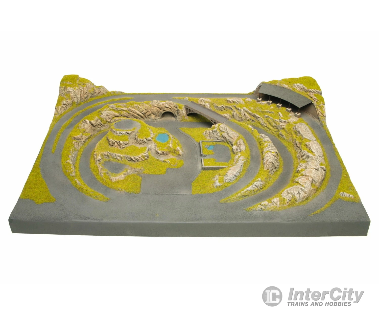 The Preformed Layout ‘Merano’ is suitable for Z gauge (1:220 scale). The diorama, made of structured hard foam, pre-painted and covered with grass, is a real eyecatcher! The appropriate Laser-Cut Kits for bridges and avalanche barriers are included. The track plan for the preformed layout is also included.