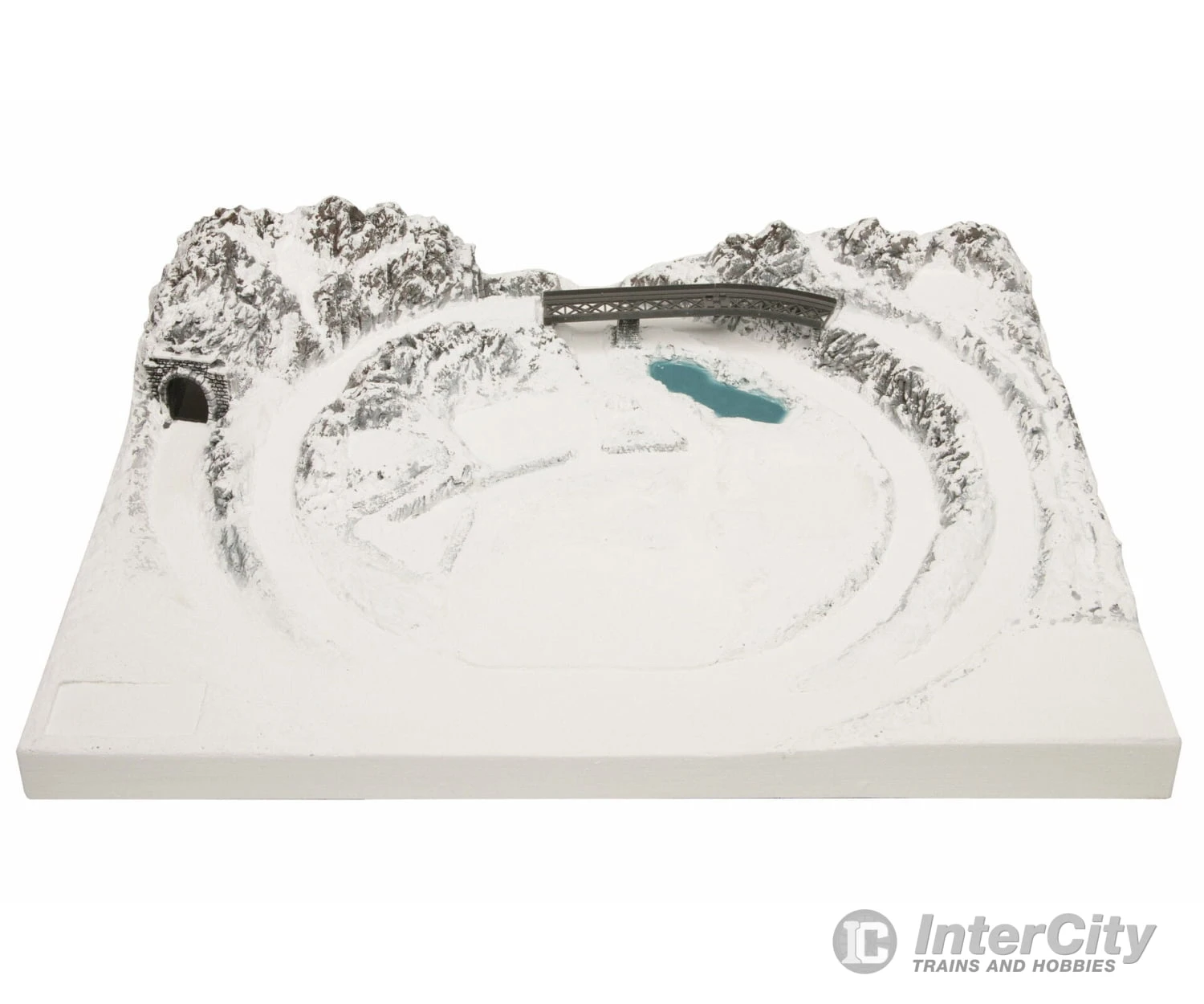 The Preformed Layout ‘St Anton’ is suitable for Z gauge (1:220 scale). The diorama, made of structured hard foam, pre-painted and covered with snow, is a real eyecatcher! The appropriate bridge and track plan are included.